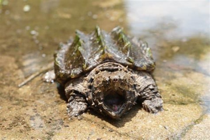 When identifying a snapping turtle, look for its dark carapace (upper shell) with a serrated back and its smaller, less-completely-covering plastron (lower shell).