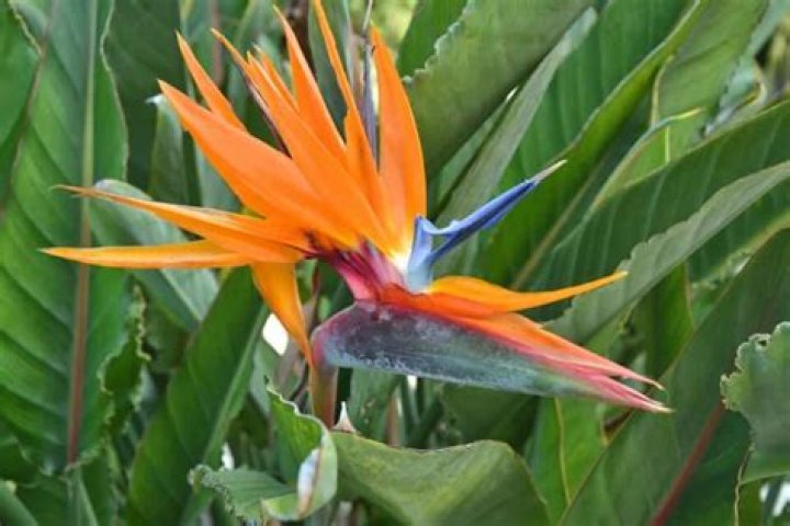 Stralitzia reginae (Bird of Paradise) blooms with brightly hued blooms that resemble flying birds. Up to 36 flower spikes can be produced by a mature plant each year. Plants can bloom all year round in ideal conditions.