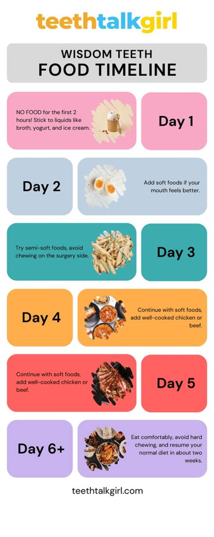 Eating soft foods that don’t require much chewing on the third day after surgery is a good idea. Examples include macaroni and cheese, cooked noodles, poached eggs (either soft or scrambled), and soft sandwiches. Pizza, rice, popcorn, and hamburgers are all examples of foods that should be avoided. Avoid foods that are too spicy or acidic.