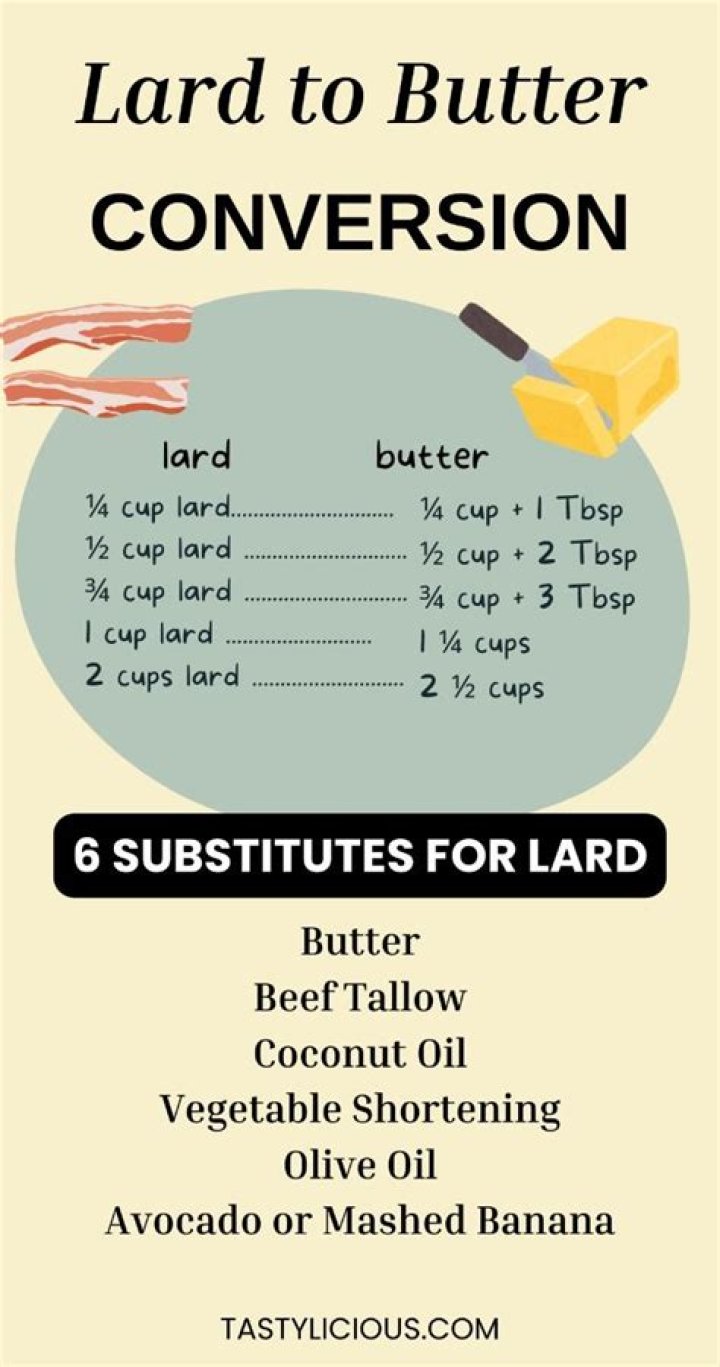 Butter is the best alternative to lard because it has a similar flavor and texture. Unless your recipe specifically states otherwise, unsalted butter is the best substitute for lard in most recipes. Other options exist as well. Shortening or oils like coconut, vegetable, or olive can be used if you prefer.