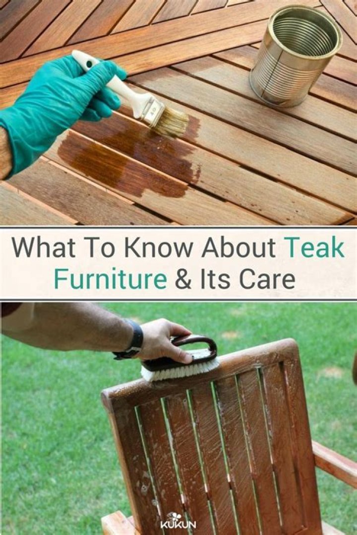 Teak furniture should be cleaned with a solution of soapy water and a few drops of either white vinegar or bleach to get it sparkling again. The soapy solution and any buildup of dirt, grime, bird droppings, and the like can then be removed with a hose (operated at normal water pressure).