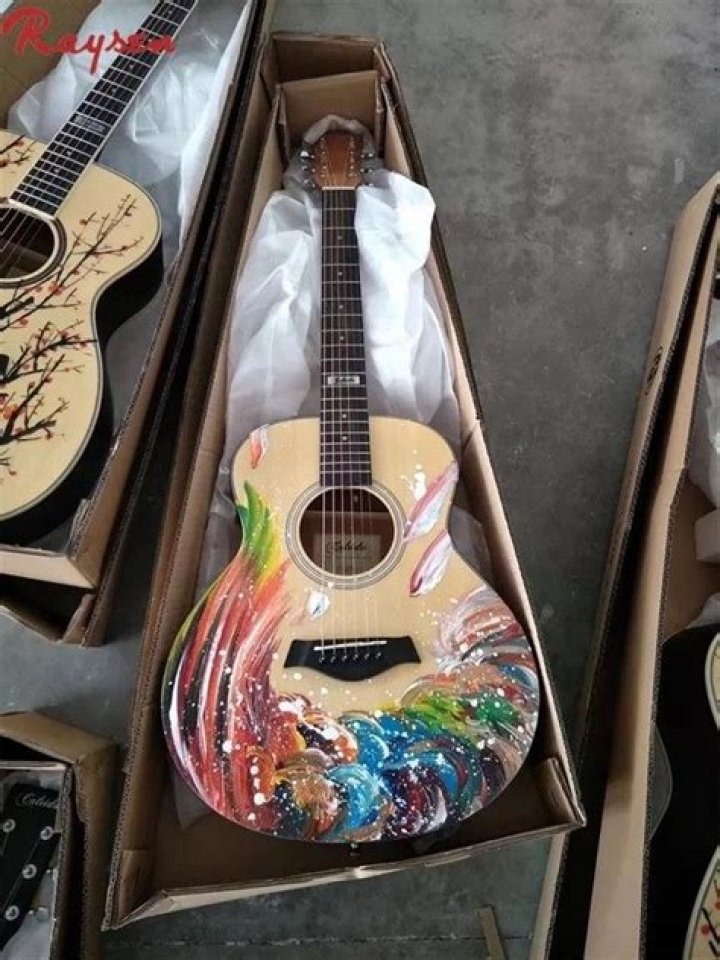 Decorative painting on guitars, such as adding designs or images, is frequently done with acrylic paint. Polyester, polyurethane, and nitrocellulose are the most common materials used in guitar paints because they continue to cure over time, making them long-lasting and improving the sound of the instrument.