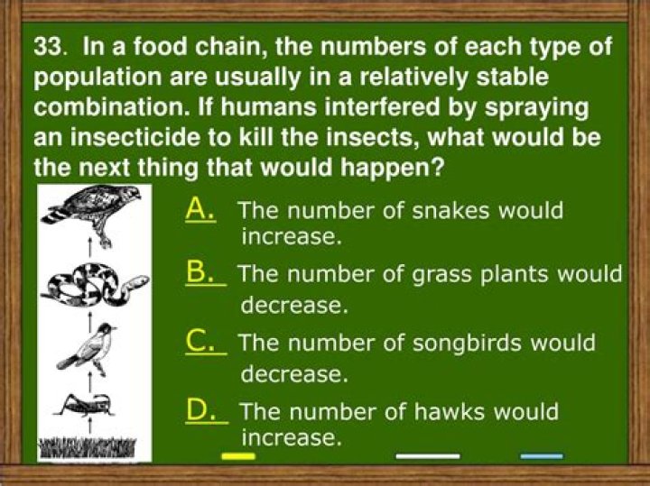 Grass and snake populations will both rise and fall as a result of this change. Correct! Grass will grow if there are fewer grasshoppers. As the number of grasshoppers decreases, so will the population of snakes.