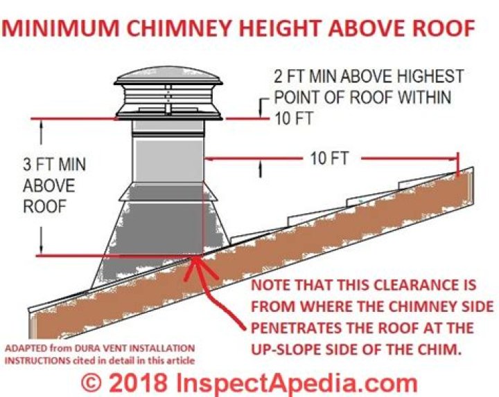 Slate, metal, rubber, asphalt, or cedar shake all have the same effect. There is another school of thought, however, that this minimum height is for performance, ensuring that the chimney is tall enough to provide draft. So as well as preventing drafts from being hindered by any other parts of your building.