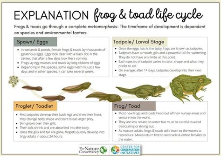 Once a tadpole hatches, it takes about 14 weeks for it to mature into a frog. Toad tadpoles mature into toadlets in about four months, whereas frog tadpoles mature into froglets in about three months. The tadpole’s tail and body roundness decrease as it grows its back legs first, then its front legs. Lungs and eardrums form as well.