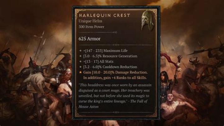 As well as providing a significant increase in magic find, Harlequin Crest (often referred to by the community as simply “Shako”) also provides a significant increase in skill points, life, mana, and damage reduction.