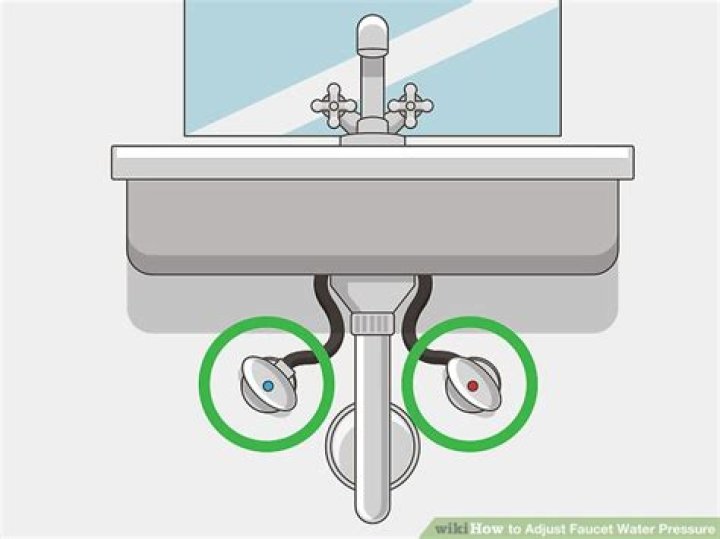 Take a look under your sink for two valves that control the flow of hot and cold water. The water pressure can be increased or decreased by turning the valves counterclockwise or clockwise.