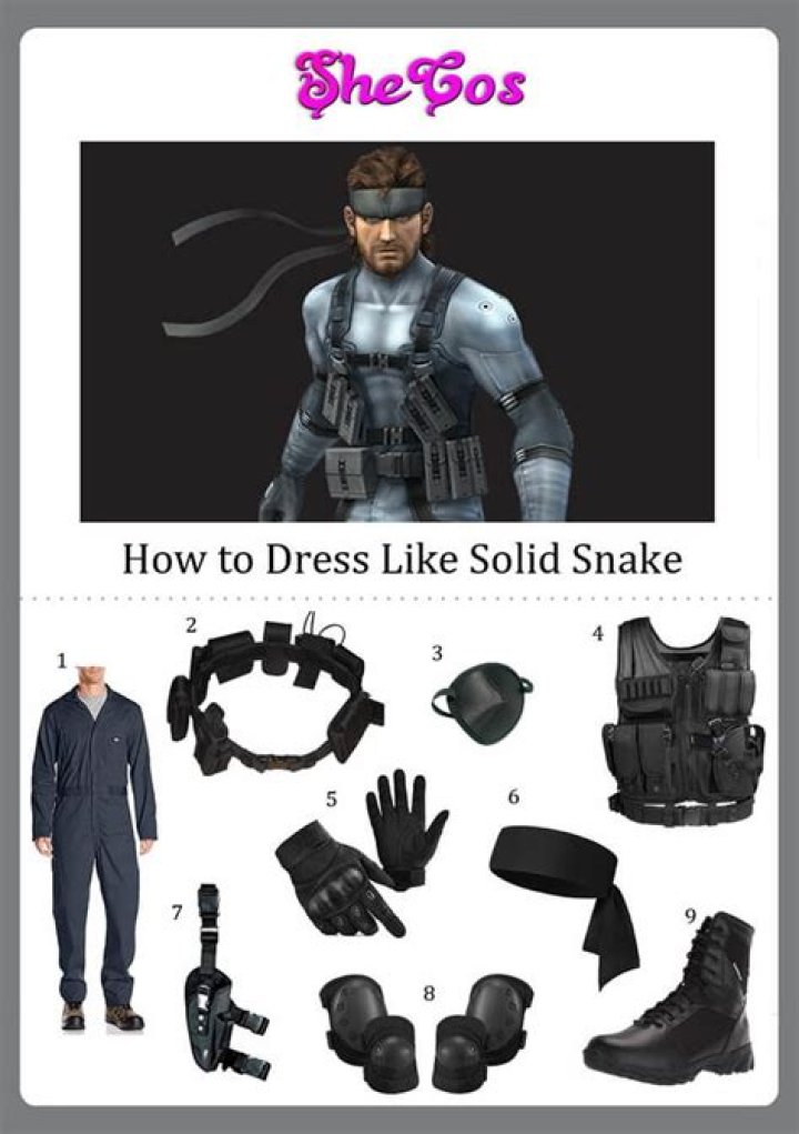 Cosplay costumes for Solid Snake from the video gameYou’ll also need a tactical vest, right leg holster, knee and elbow pads, and dark gloves to complete the look. In order to complete the look, you’ll need a sturdy bandana, an airsoft pistol, and a pistol belt.
