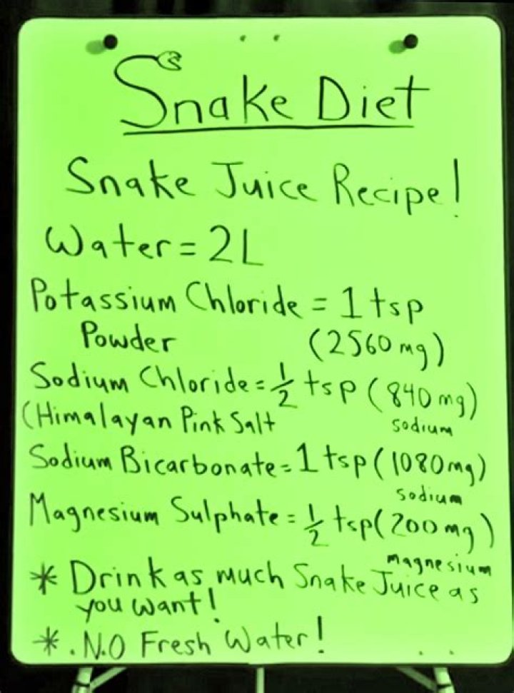 The diet’s guidelines recommend no more than three packets of powdered electrolyte mix per day if you use premade packets to make snake juice.