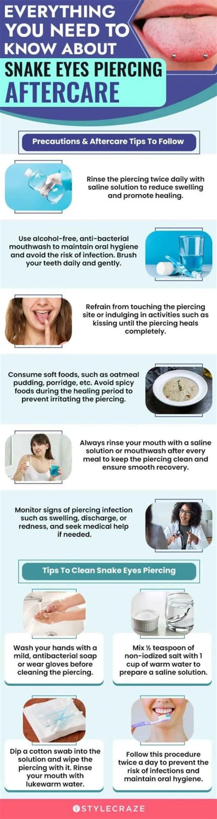 The snake eyes piercing is considered dangerous by most piercers. Piercing establishments that are considered to be of a high standard are unlikely to perform this procedure. Rejection, gum rejection, cracking or chipping of teeth are all possibilities. Even without the aesthetic considerations, this piercing is unlikely to be popular among the general public.