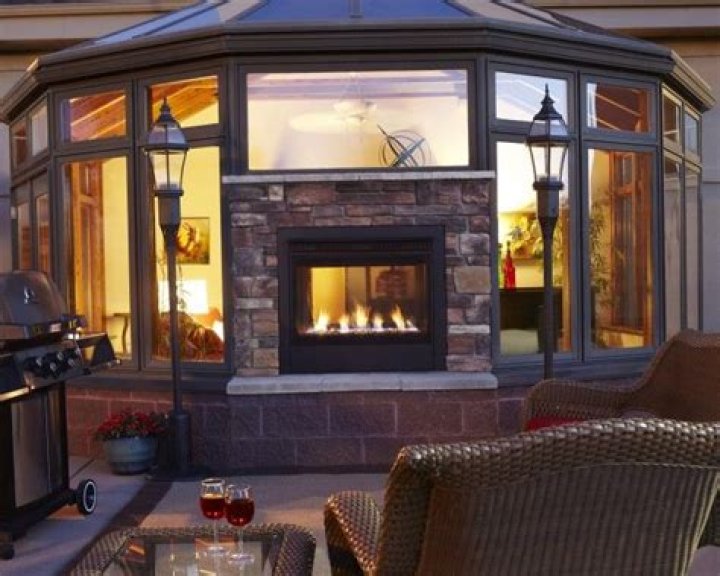 Double-sided outdoor fireplaces are more attractive, efficient, and can be installed in previously off-limits spaces, whereas traditional wood-burning fireplaces require a lot of space and venting — and are also normally built into an exterior wall.