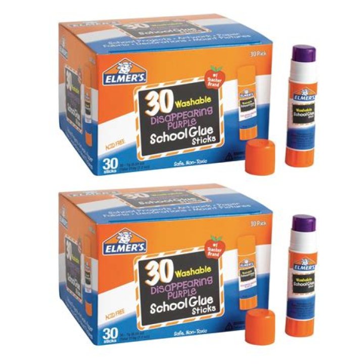 Purple Elmer’s School Glue Sticks That Disappear —Elmer’s Disappearing Purple School Glue Sticks are easy to apply and great for children. A clear finish is achieved with the Disappearing Purple formula, which applies purple and dries crystal clear, making it easy to see and use. It is a must-have for all students because it is non-toxic and safe to use.