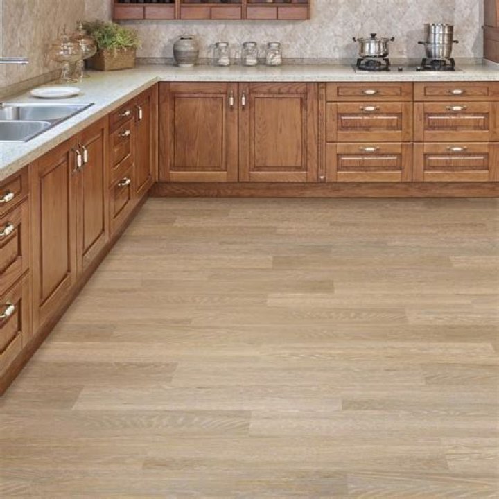 Laminates in a medium-dark shadeFloors with a medium natural wood hue that doesn’t overwhelm the room or compete with your honey oak cabinetry are one of the most visually appealing options for pairing. Choose a laminate that matches your cabinetry, like chestnut, pine, acacia, or Brazilian cherry.