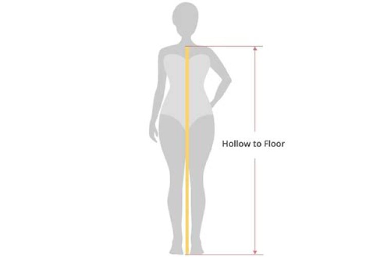 Not required for prom or bridesmaid dresses* — Hollow to the hem — When measuring from the hollow at the base of the front neck just above your collarbone to the bottom hem of a skirt, take the measurement in inches. Wearing the exact heel height you plan to wear with your dress, take this measurement.