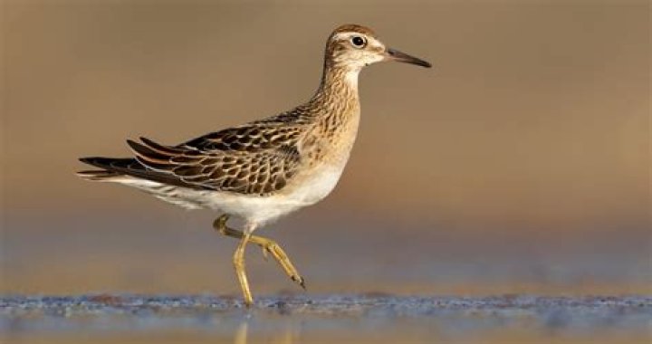 Sandpipers often sleep on a sand bar close to water or may even sleep right on the wet sand near the edge of a body of water. In these positions, their head is drawn beneath their wing for protection from predators.